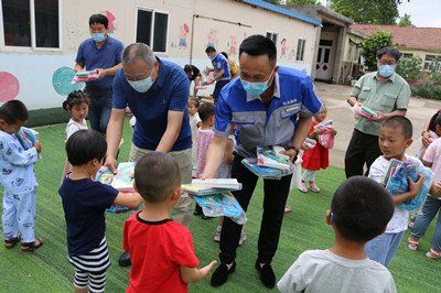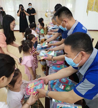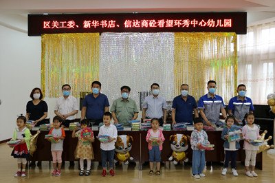 2020年6月24日,我公司总经理和副总经理和区关工委、新华书店的代表来到环秀中心幼儿园,看望、慰问儿童,与孩子们交流互动,并给孩子带去了图书、文具等礼物。