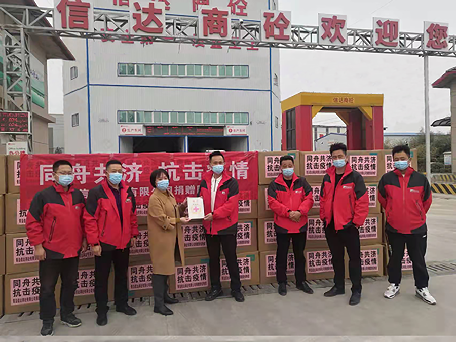 捐赠仪式在青岛信达商砼有限公司举行,公司副总经理高信国表示,我们企业尽自己所能,用实际行动为抗击疫情贡献自己的力量,践行社会责任。